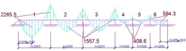 - в средних пролетах 2 и 3 и над средними опорами С и С¢: