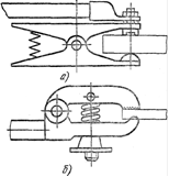 Для зажатия электрода и подвода к нему сварочного тока служит электрододержатель. Наиболее просты и удобны в работе электрододержатели пружинного, вилочного и пластинчатого типов (рис).