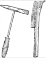 Инструмент электросварщика. При выполнении дуговой сварки необходим следующий инструмент: стальная щетка для зачистки кромок перед сваркой и для удаления с поверхности швов остатков шлака; молоток - шлакоотделитель для удаления шлаковой корки, особенно с угловых швов или швов, расположенных в узкой, глубокой разделке между кромками (рис); зубило; набор шаблонов для проверки размеров швов; стальное клеймо для клеймения швов, выполненных сварщиком; метр, отвес, стальная линейка; угольник; чертилка, а также ящик для хранения и переноски инструмента.