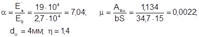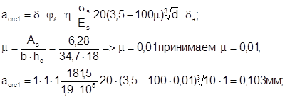η–коэффициент, зависящий от вида и профиля растянутой арматуры; для арматуры периодического профиля η=1;