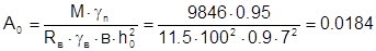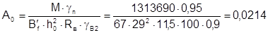 Расчетное сопротивление бетона класса В20 на сжатие Rв=11,5 МПа, на растяжение Rвf=0,9 МПа, коэффициент условий работы gв2=0,9.