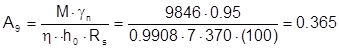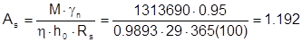Расчетное сопротивление арматуры А-III Rs=365 МПа.