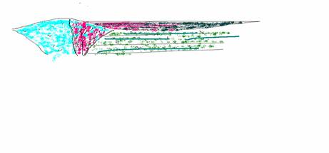 В геологическом разрезе некоторых месторождений наблюдается сопряжение богатых секущих штокверковых и жильных зон в вулканоструктурах с более бедными, но всё же промышленными по содержанию стратиформными межпластовыми залежами кварцитов с полосчатой гематит-сульфидной минерализацией и содержанием золота 1-3 г/т в обрамляющих вулканогенно-осадочных породах (Кочбулак), что придает разрезу рудных зон сложный рисунок: (розовое - руда).