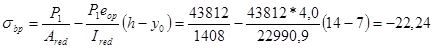 Кривизна от кратковременного выгиба при действии усилия предварительного обжатия с учетом