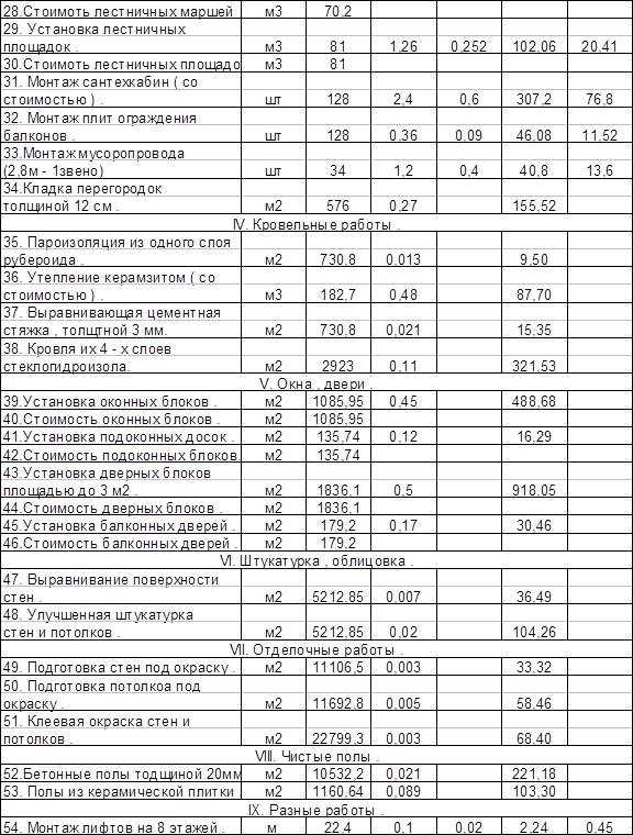 2. Ведомость объёмов и трудозатрат общестроительных работ