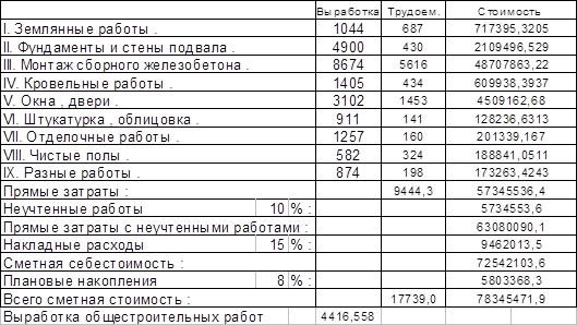 · Средняя выработка на общестроительные работы для данного типа здания должна быть в пределах 3000….3700. Полученный результат завышен и нуждается в корректировке.