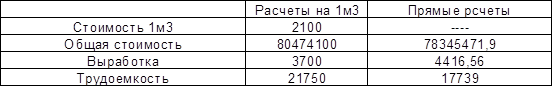 · Полученная в результате прямых расчетов сметная стоимость примерно равна, рассчитанной на 1м3.