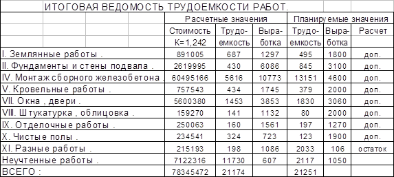 Также помимо итоговой ведомости трудоемкости основных работ составляем итоговую ведомость трудоемкости специальных работ.