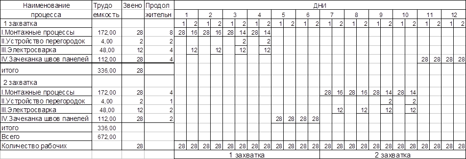 Работы будем производить поточным методом оной специализированной бригадой. Разбиваем этаж на две захватки равных по объему работ.