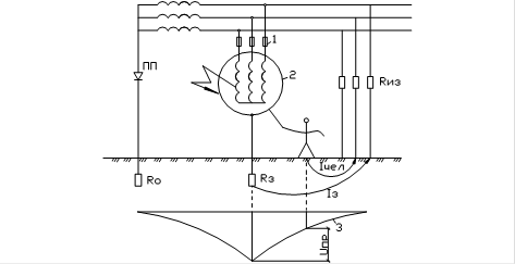 Защитное заземление – преднамеренное соединение с землей частей оборудования, не находящихся под напряжением в нормальных условиях эксплуатпции, но которые могут оказаться под наряжением в резельтате нарушения изоляции электроустановки.