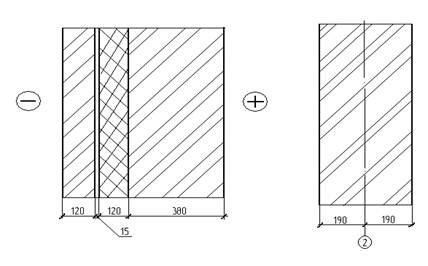 Внутренние стены выполнены двухрядной кладкой толщиной 380 мм. Для кладки использован керамический рядовой кирпич М 100, размером (250х120х65мм), ГОСТ 530-2007.