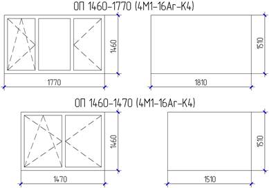 Оконные блоки пластиковые с двойным остеклением. Марки окон: ОП 1460-1770 (4М1-16Аr-К4), ОП 1460-1470 (4М1-16Аr-К4).