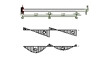 Рис.2 Геометрические размеры и опоры усилий второстепенной балки.