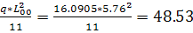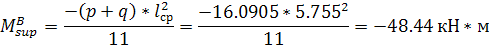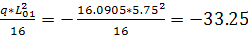 QB=-(q×а2)= 16.0905 × 5.75x0.6=-55.51 кН
