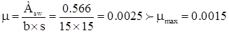 При максимальном диаметре продольной арматуры Ø14 из условия свариваемости принимаем для расчёта поперечную арматуру, принимаем Ø6А240С (Аsw1= 0.283см2) при 2-х каркасах (n=2) (Аsw=2 ×Аsw1=2×0.283=0.566 см2)