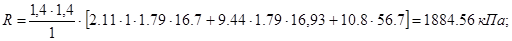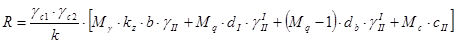 Р не должно превышать расчетного сопротивления грунта основания R кПа, определяемого по формуле: