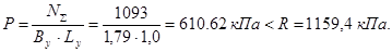 Давление от действующих нагрузок и собственного веса фундамента, действующее по подошве фундамента: