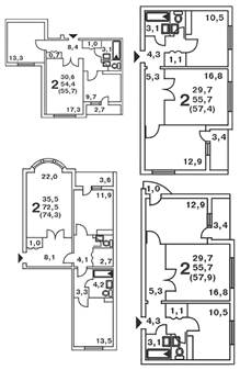Рис. 3 - Примеры планировочных решений трехкомнатных квартир