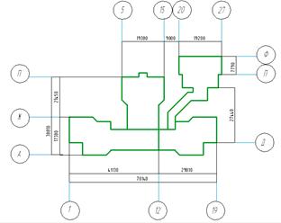 Крыша плоская. Конфигурация здания в плане имеет сложную форму, рисунок 1.