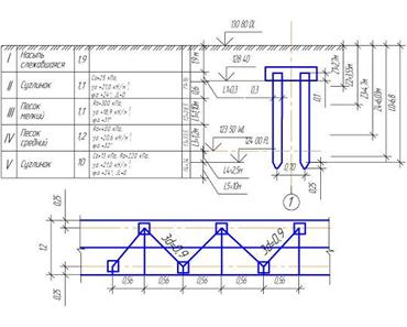 Рисунок 3 – Инженерно-геологические условия площадки и план расположения свай