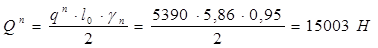 Максимальная поперечная сила на опоре от нормативной нагрузки: