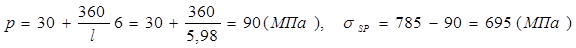 σSR = RS + 400 – σSP – ΔσSP = 680 + 400 – 485 = 595 (МПа);