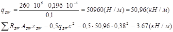 – усилие в хомутах на единицу длины элемента в пределах наклонного сечения;