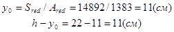 Расстояние от ядровой точки, наиболее удаленной от растянутой зоны (верхней) до центра тяжести приведенного сечения: