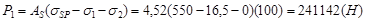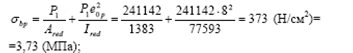 Усилие обжатия с учетом всех потерь напряжений в арматуре Р2 = АS (σSР -σlos) = 4,52 (550–105) (100) = 201140 (H) = 201,14 (кH)