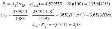 при σbp/Rbp = 3,73/11=0,34πα=0,25+0,025·Rbp =0,25+0,025·7,5=0,44 (что<0,8).