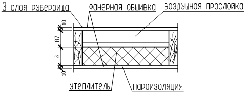5. Фанерная обшивка g0 = 600 кг/м3; d5 = 10 мм; l5 = 0.18 Вт/(м×С0);
