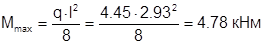 Проверка панели на прочность. Максимальный изгибающий момент в середине пролета: