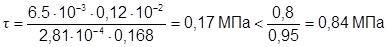 расчетное сопротивление скалыванию: Rф.ск= 0,8 МПа;