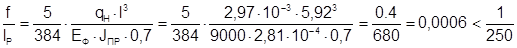 - предельный прогиб в панелях покрытия согласно табл. 16 СНиП II-25-80.
