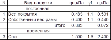 На раму действуют равномерно распределенные постоянные и временные нагрузки(т.сбор нагрузок). При заданных геометрических размерах рамы и высоте стойки Н<4 м ветровая нагрузка не учитывается, т.к. отсос ветра на кровле уменьшает усилие в элементах рамы.