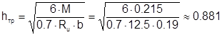 Требуемую величину сечения определяем приближенно по величине изгибающего момента, а наличие продольной силы учитываем коэф. 0.7: