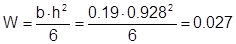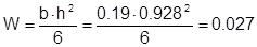 W=2×b×l2/6=2×9×48.52/6=7056.75 см3, где b=9 см–ширина опорной плоскости башмака, l=48.5 см – длина опорной плоскости башмака.