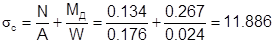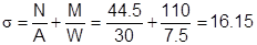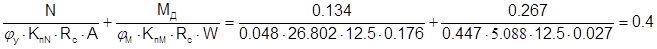 Делаем проверку напряжений при сжатии с изгибом. Изгибающий момент, действующий в центре сечения, находящегося на расстоянии от расчетной оси, равном