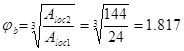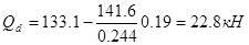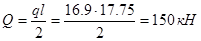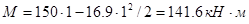 Значение Q=150 кН. С учетом влияния изгибающего момента рассмотрим сечение, расположенное на расстоянии 1 м от оси опоры. В этом сечении ho=26.7 см; z0=24.4 см; tgφ=0.19; толщина диафрагм b’=10 см; Rbt=1.2 МПа.