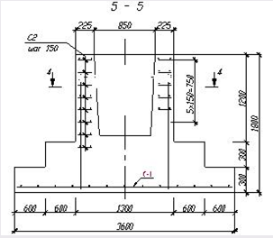 - поперечная арматура подколонника ставится конструктивно. Примем поперечную арматуру подколонника в виде горизонтальных сеток С-2 из стержней Ø 8 A-III с шагом 150 мм. Количество сеток 8 шт.