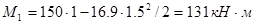 Прочность проверяем расчетом на изгиб в сечениях 1-1 и 2-2 при действии на оболочку расчетных изгибающих нагрузок. При принимаем момент М1 ( в сечении 1-1) и М2 (в сечении 2-2) одинаковым, который определяем по формуле: