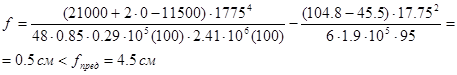 Определяем прогиб панели в середине пролета с учетом длительного действия нагрузки при коэффициенте надежности γf=1 по формуле: