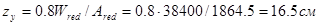 Расстояние zy от центра тяжести сечения до верхней ядровой точки с учетом коэффициента 0.8 определяем по формуле: