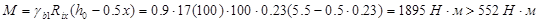 Момент М1 воспринимается поперечной арматурой сетки оболочки, где на 1 м предусмотрено 5Ø5 Вр-I, As=0.98 см2.