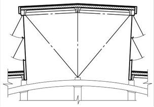 Железобетонная малоуклонная безраскосная ферма пролётом 18м →