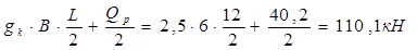 где gк=1 кН/м2+1,5 кН/м2=2,5 кН/м2 – расчетная нагрузка от веса 1 м2 кровли и плит покрытия;