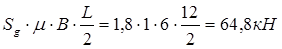 где Sg =1,8 кН/м2 снеговая нагрузка в зависимости от района строительства; μ = 1, Fсн прикладывается так же как и Fп.