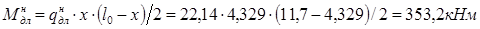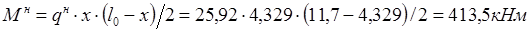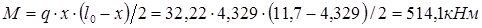 Qmax=q*l0/2=32,22*11,7/2=188,5 кН