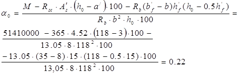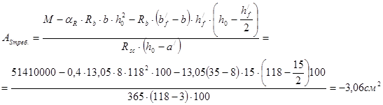 Определяем необходимость постановки арматуры в сжатой зоне А’S по расчету (из предельного условия ξ=ξR ):