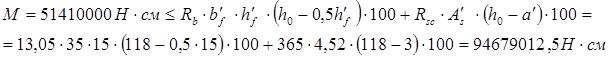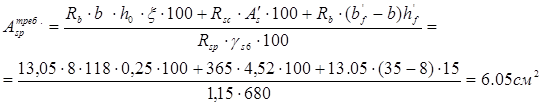 Т.к.A’Sтреб.< A’Smin , то A’Sтреб.=A’Smin=4,52 см2 (4 Ø12 АIII);.